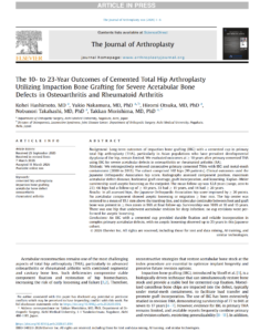 当教室の橋本康平先生の研究論文The 10- to 23-Year Outcomes of Cemented Total Hip Arthroplasty Utilizing Impaction Bone Grafting for Severe Acetabular Bone Defects in Osteoarthritis and Rheumatoid Arthritis (マウスオーバーしてクリック)がThe Journal of Arthroplasty誌に掲載されました。